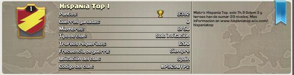 Hispania TOP es un gran clan de guerras, uno de los que mas guerras ganadas tiene de España y de nivel alto. Los que esteis en la cantera podreis pasar a Hispania TOP y partiros la cara contra los mejores del mundo.