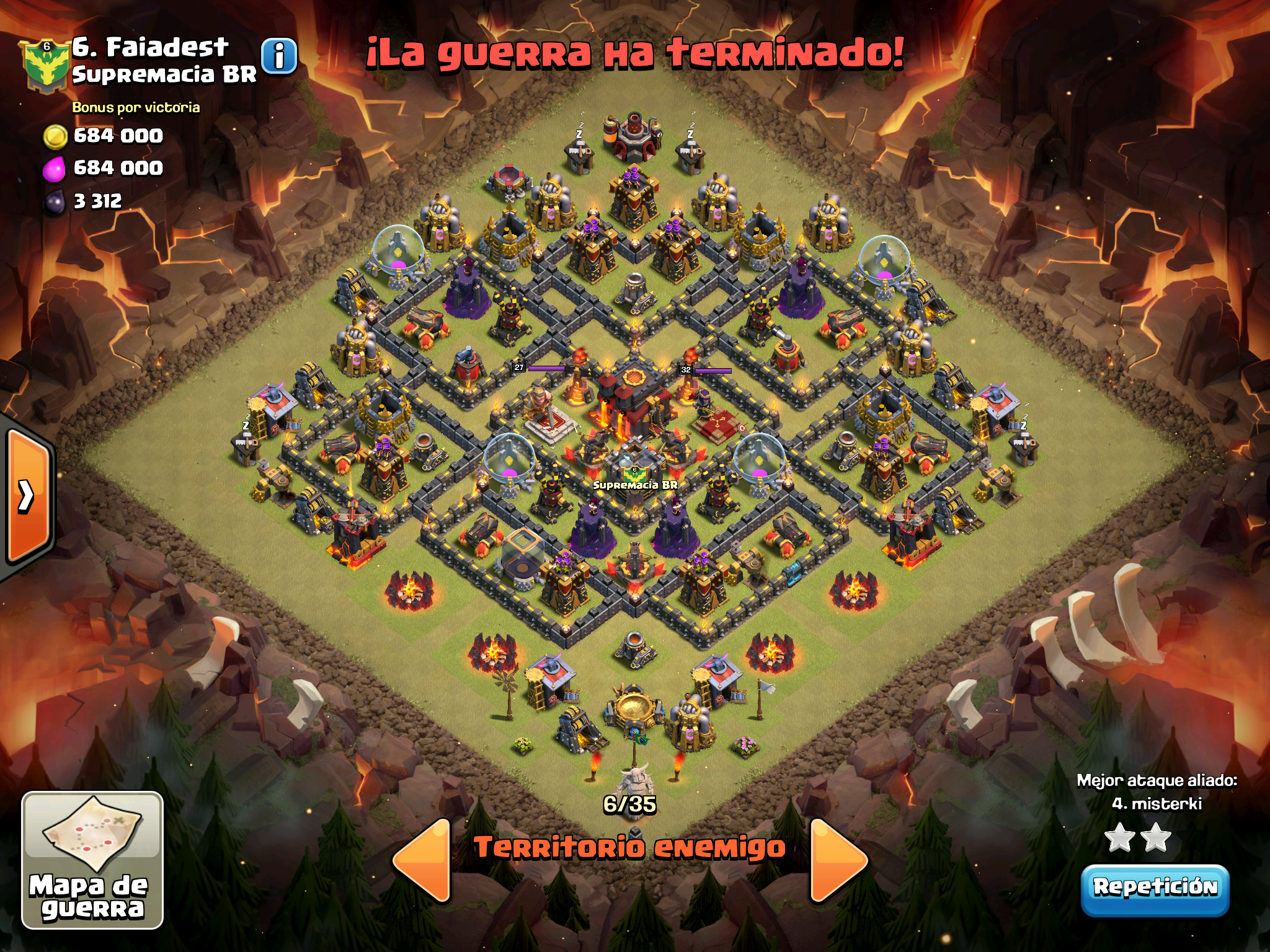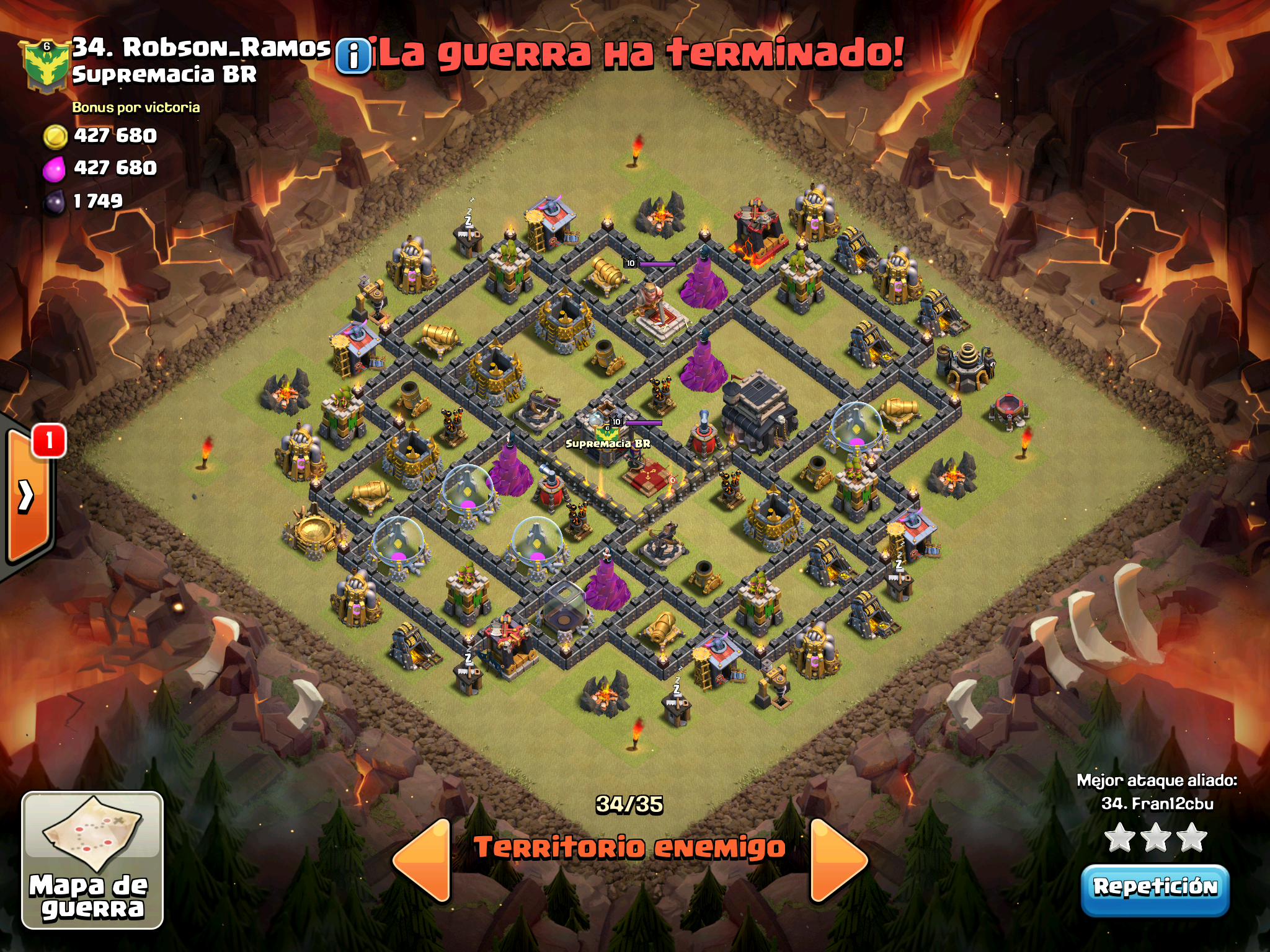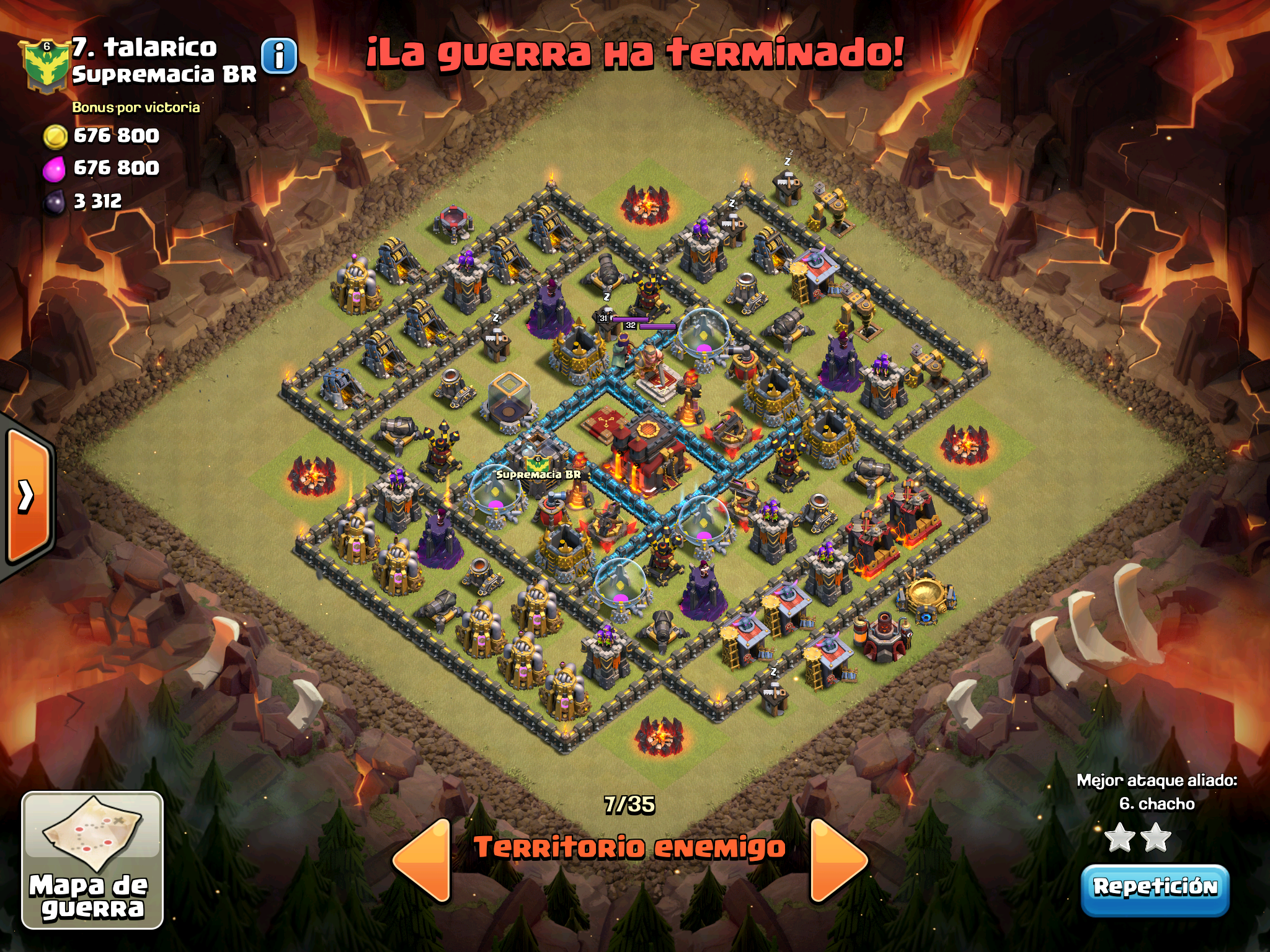 Supercell claramente nos odia y le gusta vernos perder… nos empareja contra mas TH10, contra aldeas con muros al maximo, contra heroes 40, pero nosotros hay con dos cojones hemos dado guerra y al final nos ha faltado un pelo. Este es el directo que hicimos de guerra y la verdad que se ven ataques muy chulos y tecnicas bastante interesantes.